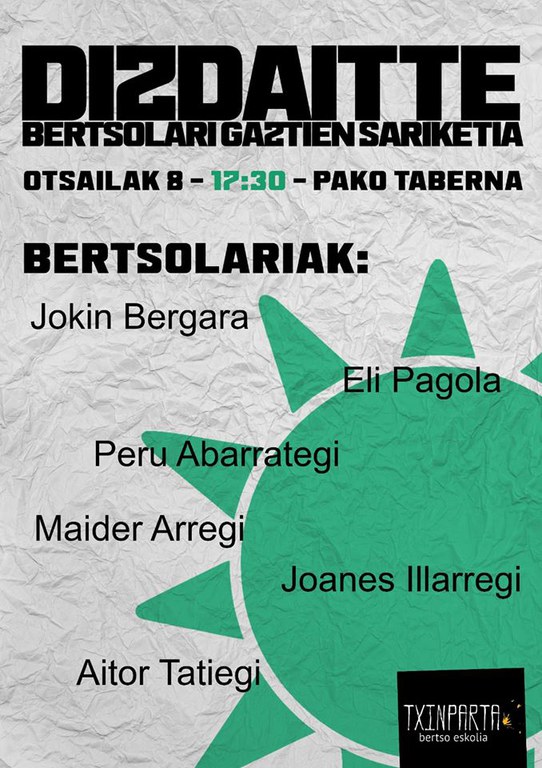 - Txinparta Bertso Eskolako gazteek antolaturiko sariketa da Dizdaitte