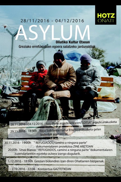 Greziako errefuxiatuen egoera salatzeko jardunaldiak . Hotz Oñatik antolatuta