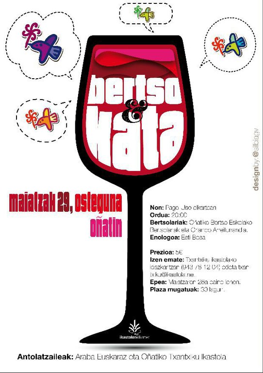 Ekainaren 15ean, Labarkan ARABA EUSKARAZ 2014 izango da MUGAN BIZI, BIZI lelopean. Jai hori kontuan izanda, maiatzaren 29an, arratsaldeko 20:00etan, Pago Uso elkartean, BERTSO KATA antolatuko dugu Labarkako ikastolako ordezkariokin batera.