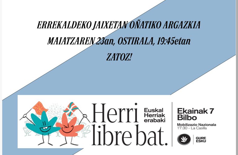 "Herri libre bat! Ekainak 7 Bilbora" Gure Eskuren Oñatiko argazkia