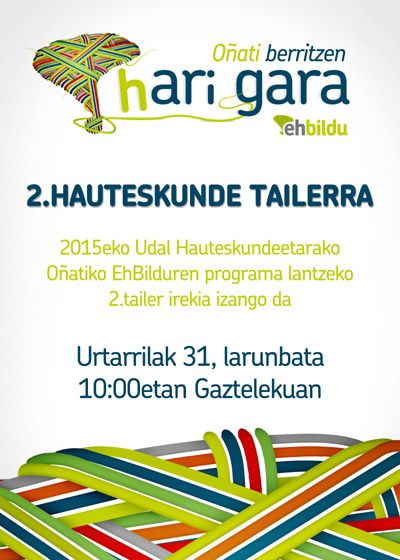 - 2015eko Udal Hauteskundeetarako Oñatiko EhBilduren programa lantzeko 2. tailer irekia izango da.