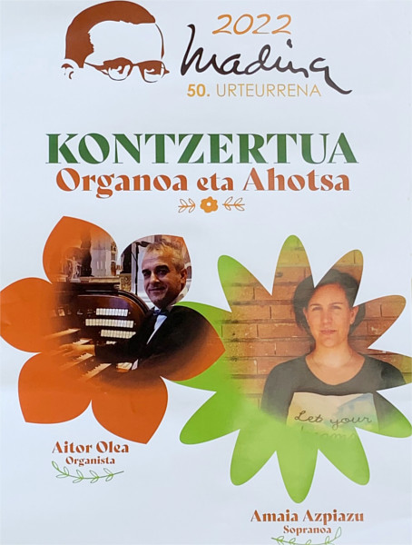 Aitor Olea organo jotzaile durangarrak eta Amaia Azpiazu abeslari oñatiarrak eskainiko dute kontzertua. Buenos Airesen eta Ameriketako Estatu Batuetan idatzitako piezak jo eta abestuko dituzte.