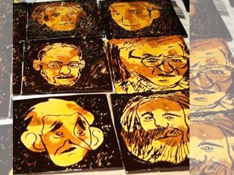 Eskuz egindako zeramikazko hainbat pieza biltzen dira, buztin beltzez eginak, engobatuak eta esmaltatuak. Buztin beltzaren plakaren gainean aukeratutako idazlearen aurpegiko detaileak esgrafiatu eta esmaltatu egiten du. Aurpegiarekin batera autore jakin horren liburuak, poemak aurkituko ditu bisitariak.