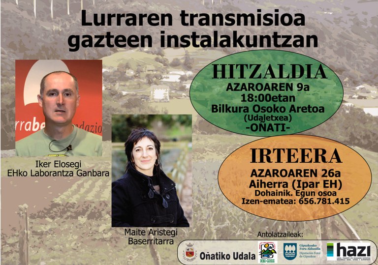 Hizlariak: Maite Aristegi (Baserritarra) eta Iker Elosegi (Euskal Herriko Laborantza Ganbara)