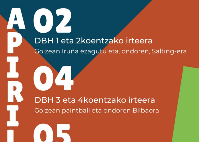 - Apirilak 2, DBH 1 eta DBH 2koentzako irteera